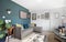 Living room: Sofa, Tv, side table, bookshelf, Table