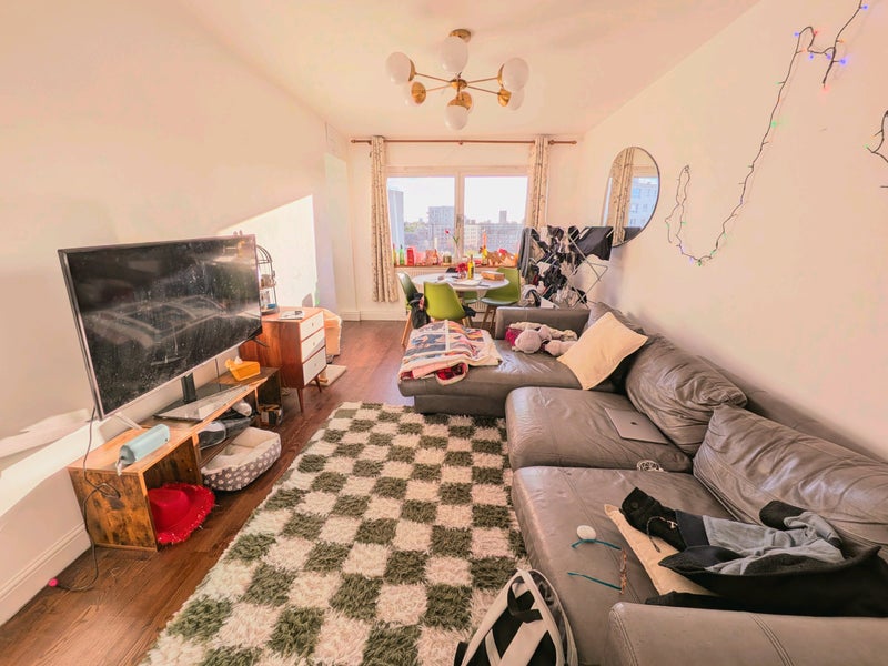 A bright single room is available in a 7th-floor flat in Hackney, with open views across the city and great natural light. The flat is home to two friendly, creative housemates in their early twenties, both working as dancers.