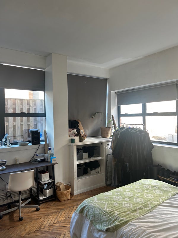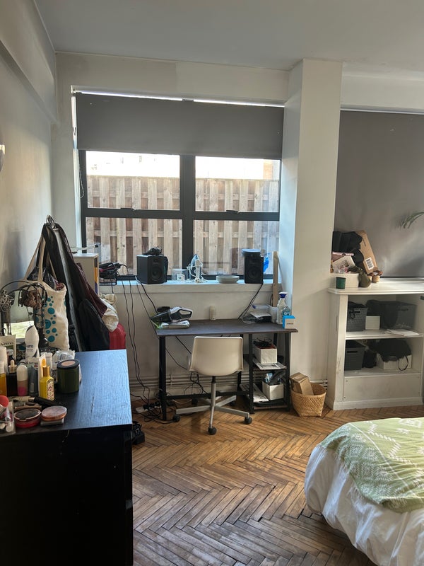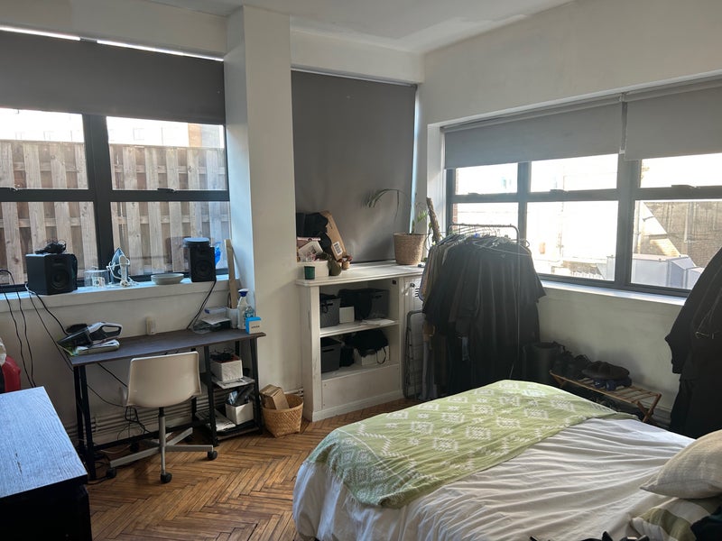 The room itself is large and bright with big windows letting in lots of natural light. I’ve done an awful job of making it nice, but it has loads of potential to be a great multipurpose room. It comes with a bed frame, black chest of drawers and a table (optional if you’d like to keep it). Can discuss!