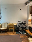 Double bed, bathroom en-suite, mini fridge, mini hob/ oven. No living room/ shared space. Furnished - including a drum set. Storage available to use: wardrobe, chest of drawers. Also desk, double bed, armchairs. Short term. Bills included. Internet included. Tv (virginmedia) included. Available from 1.4.26. Short let preferred 3-6 months. Not suitable for someone with own furniture looking for long term accommodation. Perfect for students or people visiting London for some months or who need accommodation part time. Cheaper then a hotel/ airbnb. Household got 2 dogs and 8 year old but room is self contained (studio).