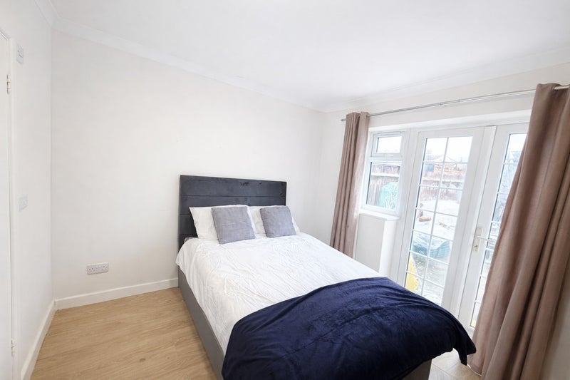 One room benefits from direct access to the garden, offering a peaceful outdoor space ideal for relaxing or working from home.