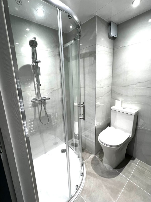 Modern Bathrooms: High-pressure showers and contemporary tiling.