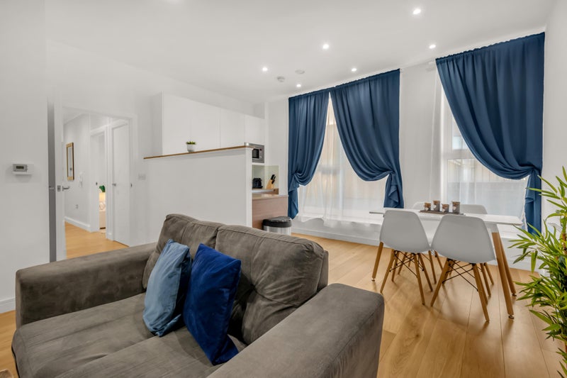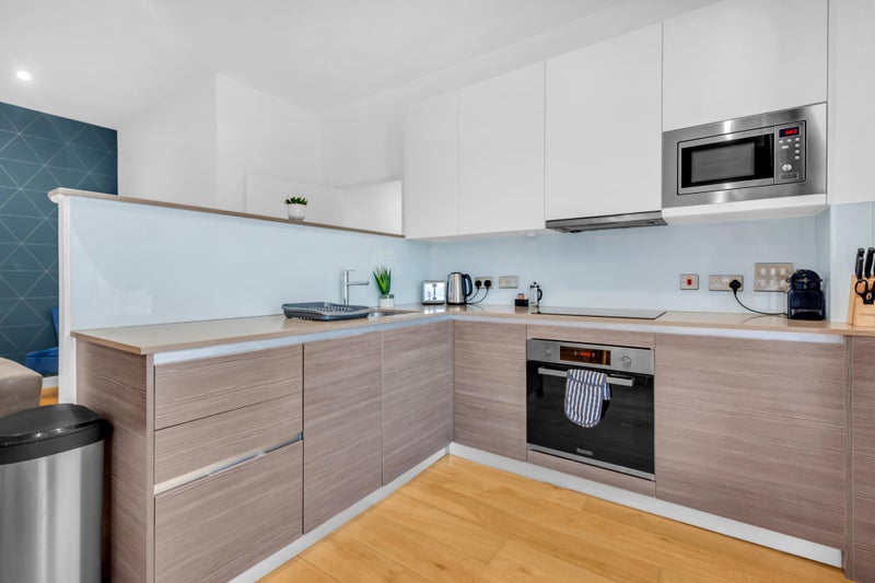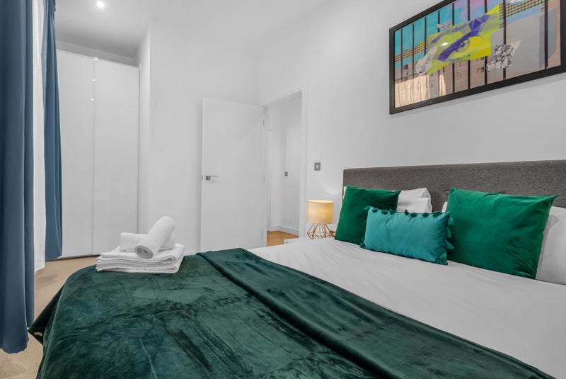 Individuals and business travellers looking for long-term lets close to Heathrow International Airport should consider our one bedroom apartment in Heathrow. This accommodation provides you with ample space thanks to the open plan layout of the living room. The fully equipped kitchen with modern appliances makes it possible to cook your own meals. The interior design makes it feel home away from home. The floor to ceiling windows throughout the apartment give you amazing views of the city.