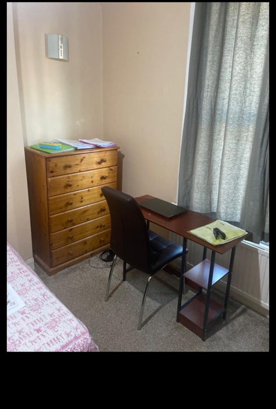 Double room in good condition to let in a house with large garden in an Indian family for a female professional or student . All bills included with super-fast Virgin broadband. Near to supermarket, high street, station and bus stops. There is a double wardrobe , chest of drawers, fridge freezer and a computer desk and chair in the room- ideal for a professional or student . The room is for one person only although it is a double room.