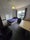 Living area with 58 inch wall mounted tv with sofas and dining area
