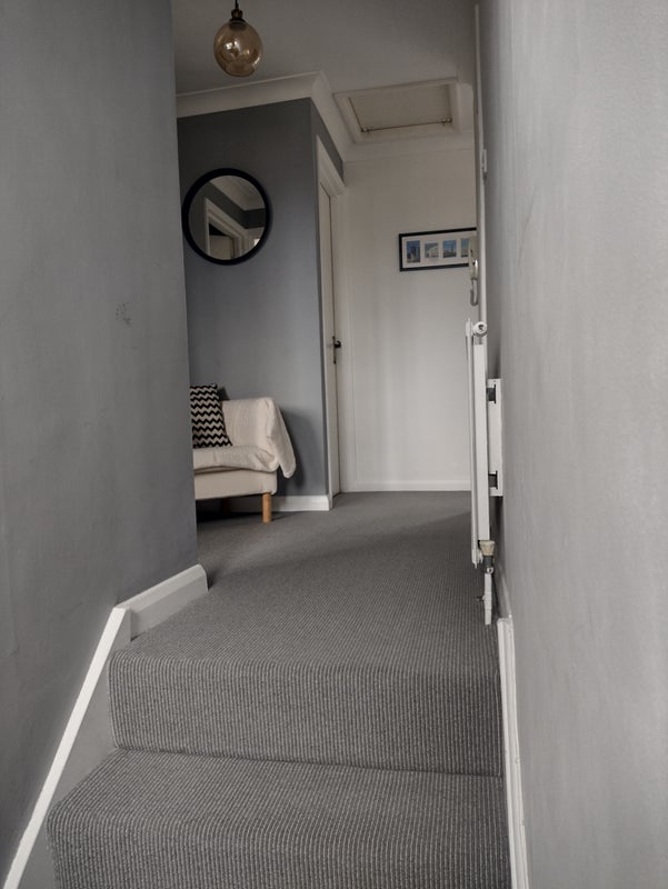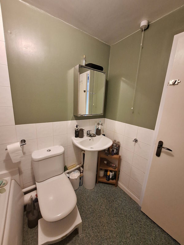 The shared bathroom has a shower above the bath (with very good water pressure). Modern kitchen, with washing machine and a fitted dishwasher. The internal hallway has a shoe cupboard by the front door, and occasional chair.