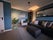 The living area is comfortable and cosily decorated, with four-seater table, large sofa-bed, and armchair. 55" TV and numerous plants.