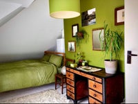 Bedroom with double bed, desk and chest of drawers. Can be flexible with furnishing for longer term stays.