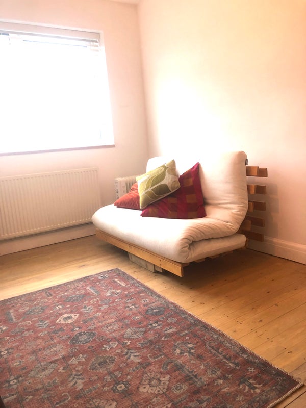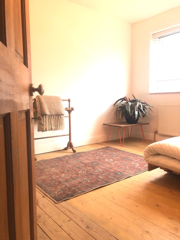 A bright West- facing double room in a relaxed, newly decorated & renovated 3 bedroom house. The largest 12x10’10 has two floor to ceiling cupboards with shelves / wardrobe so plenty of storage space. The room get lots of natural light and comes furnished with a double bed, chest of drawers (I can exchange furnishings depending on your requirements as I have alternative items.