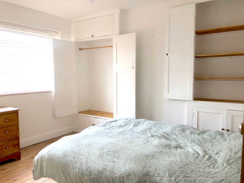 A bright West- facing double room in a relaxed, newly decorated & renovated 3 bedroom house. The largest 12x10’10 has two floor to ceiling cupboards with shelves / wardrobe so plenty of storage space. The room get lots of natural light and comes furnished with a double bed, chest of drawers (I can exchange furnishings depending on your requirements as I have alternative items.