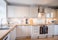 The kitchen is modern and light and has lots of storage and refrigerator space. A washer dryer is provided as well as a dishwasher. There is kitchen table and seating for up to eight people.