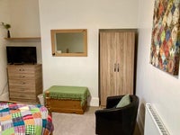 This house has a family bathroom on the first floor with shower and bath and a shower room on the ground floor. There is a comfortable shared sitting room with TV on the 1st floor, fully equipped kitchen, with microwave, kettle, toaster, American style fridge freezer, washing machine and lots of cupboard space.
