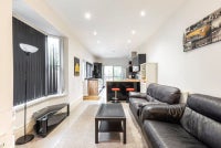 The house has modern shared fully tiled open plan reception / dining / kitchen area with flat screen TV, Leather Sofas.