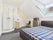 The room features a double bed and mattress, private shower cubicle, sink, chest of drawers, and a table with two chairs, providing a cozy and practical living space. You’ll also enjoy access to a spacious communal lounge with a charming oak fireplace, and a large, well-equipped kitchen that opens into a lush rear garden—perfect for relaxing or even growing your own vegetables.