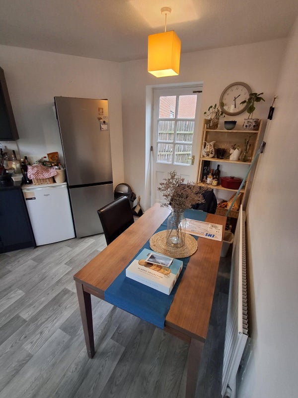 Shared kitchen/diner, living room and bathroom upstairs with additional toilet downstairs. Garden with decking terrace and shed for bike storage.