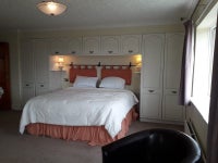 These two rooms are accessed by their own staircase. On the landing of this staircase, there is a convenient breakfast area consisting of a fridge, toaster, kettle and microwave.