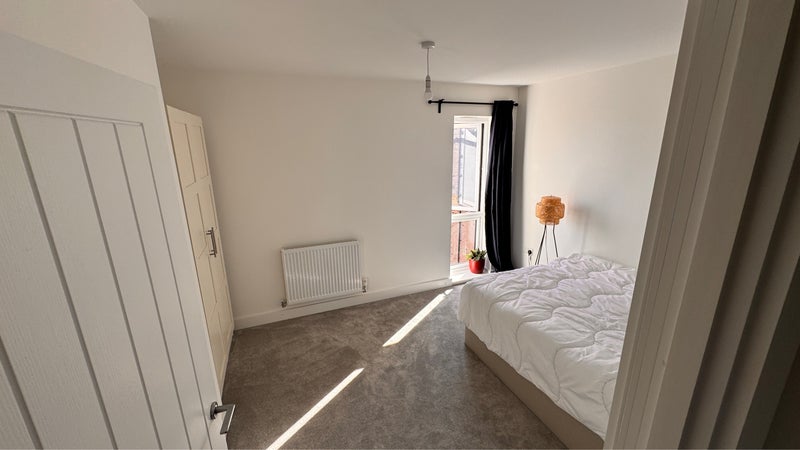 New build apartment, double bedroom with large bathroom (with bathtub). I have my own en-suite so don’t use the bathroom.