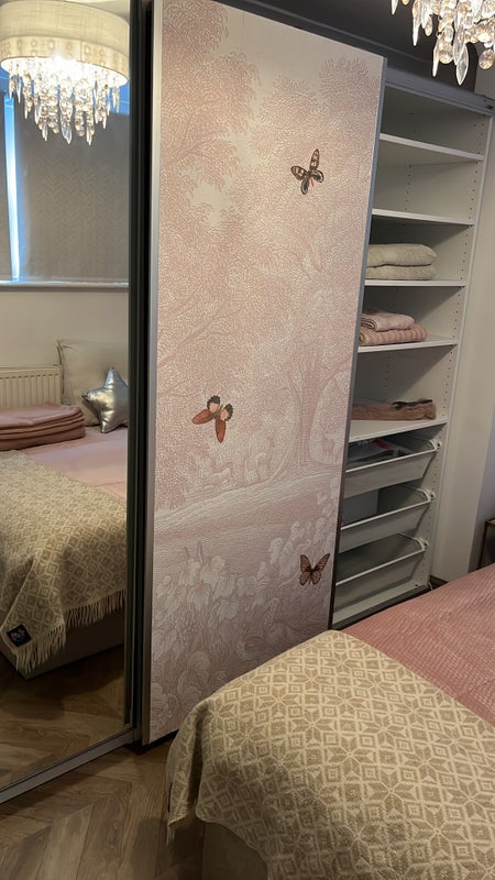 Room 2 - Double bed, large wardrobe with 2 hanging rails, shelves and storage drawers. Desk and chair for WFH if required. 2 shelves for personal items. Overlooking the beautiful garden. Very quiet room at the rear of the house.