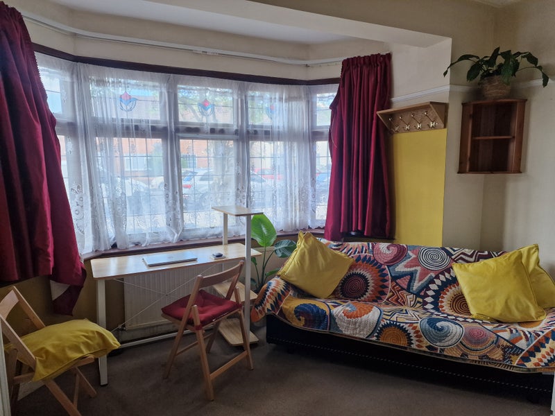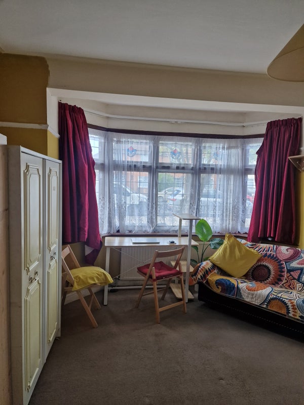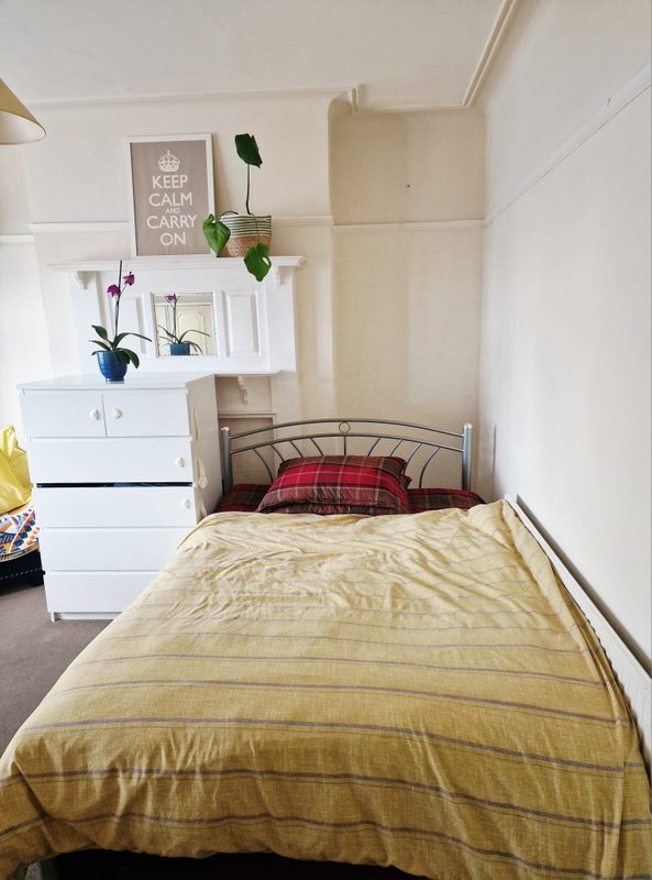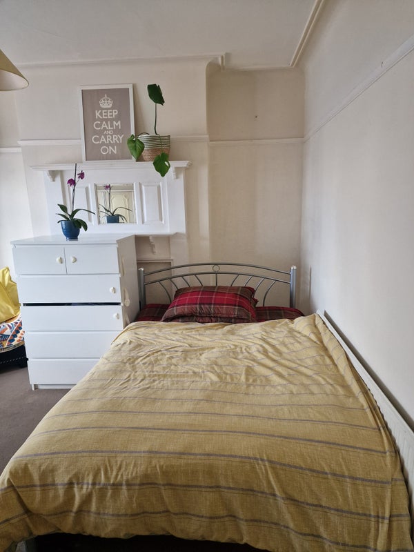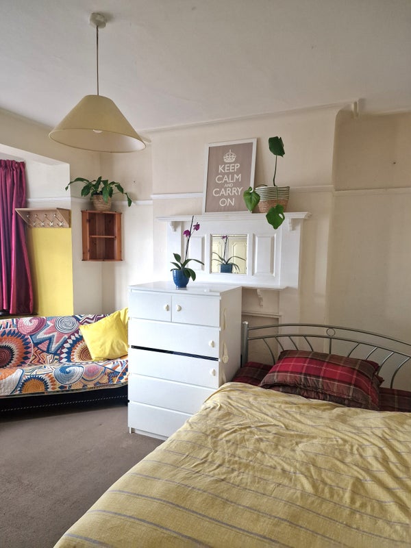 The spacious room is fully furnished with a comfortable double bed, a chest of drawers, a cupboard, efficient gas central heating, and double glazing for added comfort.