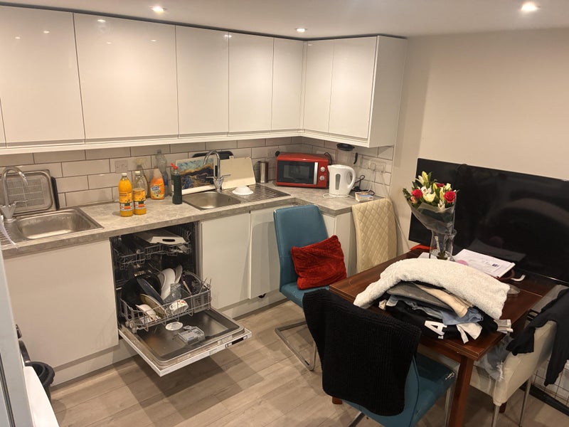Large communal kitchen with2 ovens, 2sinks dishwasher, washing machine etc. Off street parking. The room is in house that has been converted into studio apartments Grange Hill tube station which is on the central line is only 10 minutes walk. Viewing highly recommend