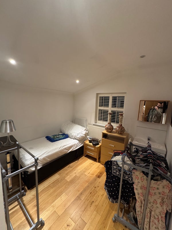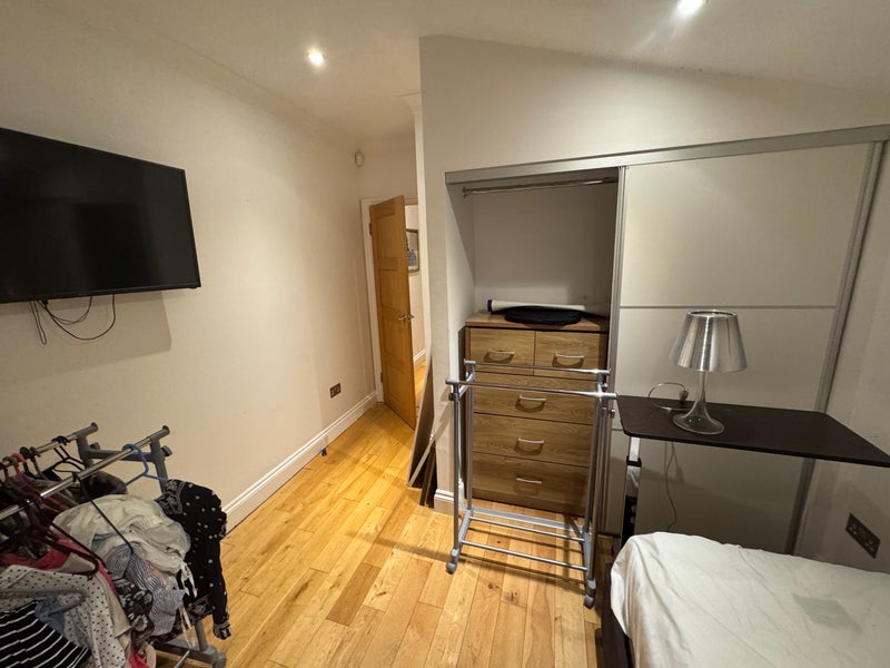 Its a double bed room with a built in closet with a dedicated bathroom its on the 1st floor
