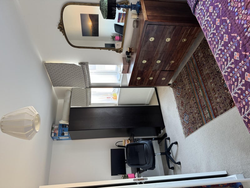 The room is bright and well-sized and will come fully furnished with a double bed, wardrobe, and desk. Please note that furniture will be different to that shown in the photos. The property has modern amenities and regular cleaning of communal areas to maintain a comfortable living environment.