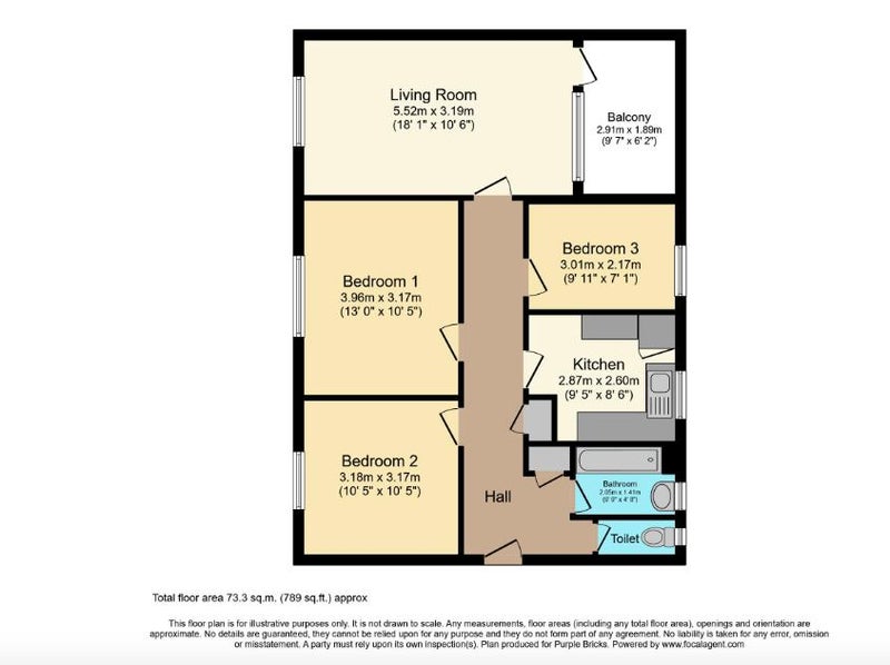 3-bedroom flat, Approx. 789 sqft