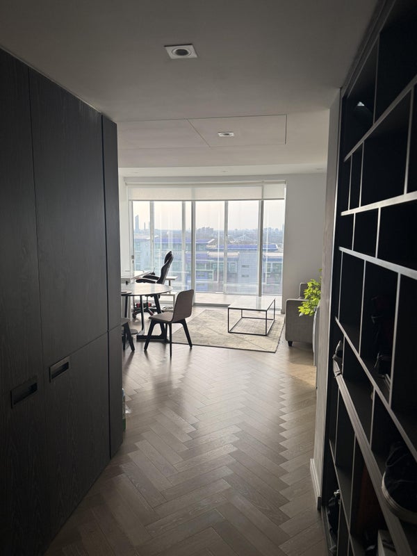 The apartment is on the 13th floor with stunning views facing Battersea Park, along with a sky garden balcony.