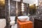 Wooden floorboards throughout with carpet in the bedroom and a stylish marble bathroom.