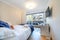 - 5 rooms (2 en-suite; 3 sharing 2 large shower rooms i. e. 1.5 person per bathroom)