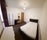 The room comes equipped with high-quality furnishings including a faux leather double bed, plenty of storage space, chest of drawers, desk and office chair.