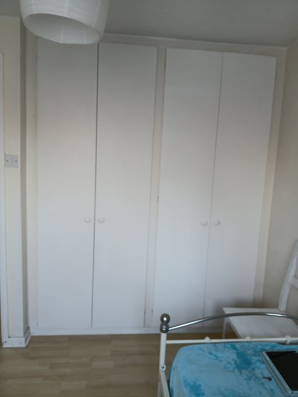 This warm room is bright, clean and furnished: big, comfortable wardrobe- you can easily put there all your belongings, comfortable single bed, electric heating, plastic/glass windows, giving you view of the local community garden. For those they use laptops- there is a little, elegant bureau.