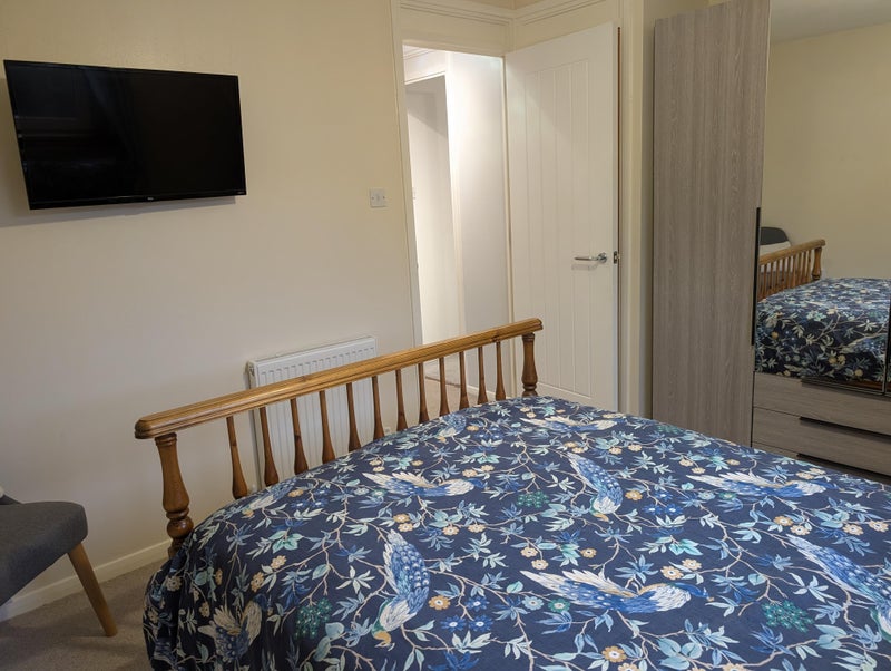 The bedroom is fully furnished with double bed, large wardrobe and TV. The accommodation has a WC/Shower room downstairs and a second large bathroom with shower upstairs which will be exclusive to the lodger. You would be sharing with myself (the landlord).