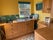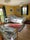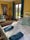 The main sleeping/sitting room has a comfortable double bed, small sofa, table and chairs plus clothes hanging space and a dresser.