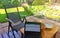 The room has a large mirror/ wardrobe, bed, desk/ chair, lamp and book shelves. Green Garden view with fruit trees and lovely deck sitting area in the garden overlooking fish pond. Available from end of February 2026.