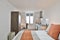 A double bed, a thoughtfully designed study area, and plenty of storage.