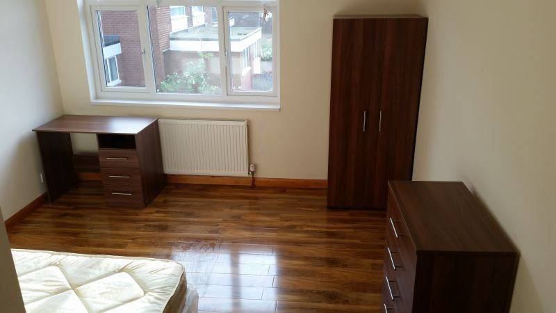 Fully furnished (wardrobe, chest of drawers, desk, double bed). Secure with built in locks on door.