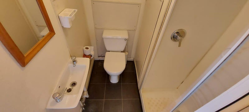 - This studio has an ensuite bathroom with a shower