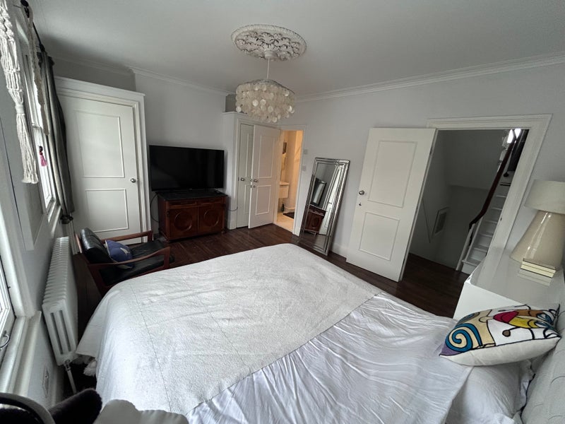 It is a three storey Victorian townhouse, 4 bedrooms and 4 bathrooms (3 en-suite). The interior of the house is beautiful, renovated recently, new German kitchen with huge island. There is a cute townhouse garden in the back. with seating, sun lounger etc. The rent includes all bills and biweekly cleaner for communal areas but we keep the place neat in general all the time.