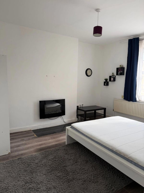 A bright and spacious double room with a king-sized bed is now available in a well-maintained 3-bedroom flat located in the heart of E1.