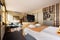 Flat includes a King bed, swivel TV, surround sound audio, air con, kitchenette with halogen eco stove and fridge/freezer. The bathroom is kitted with a walk-in shower and double deep bathtub. There is Free WIFI and a communal laundry room .