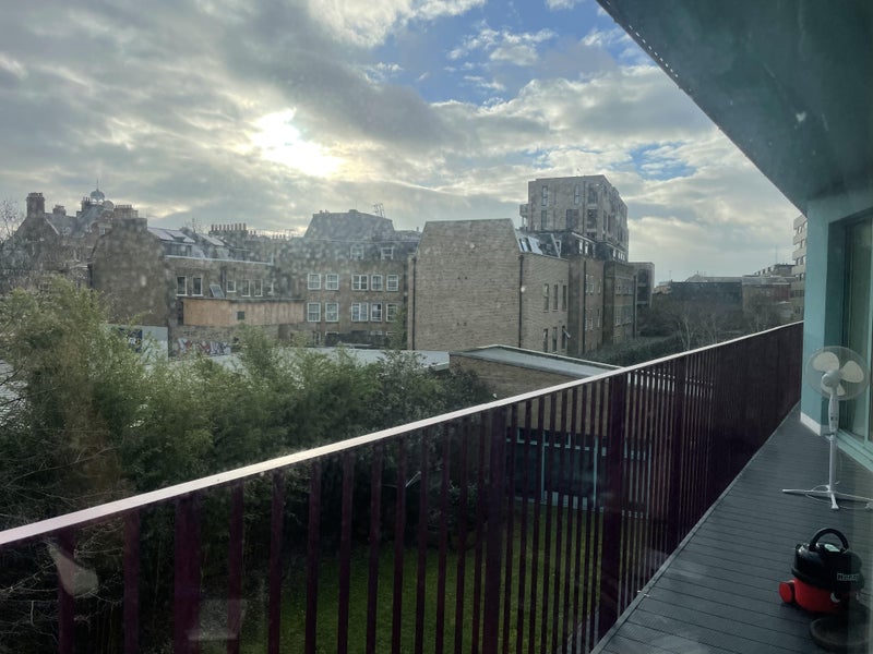 The flat is just a 5-minute walk from Elephant & Castle station and super close to Sainsbury’s, Morrisons, Miu Miu, and Tesco. So everything’s really handy. The room is east-facing, which means you get lovely morning light, and there’s a big balcony overlooking the road where you can catch the sun with a coffee.