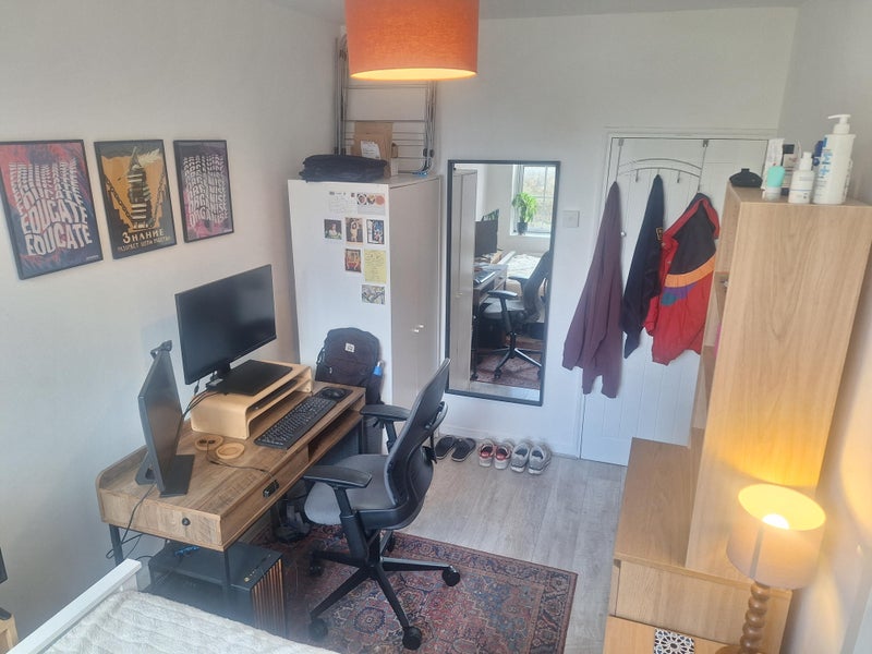 As per the photos, the room is a great size and fts double bed, wardrobe, bedside tables and chest of drawers.