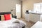 Rooms with elegant, modern style furniture, comfortable beds, equipped with desks and USB ports.