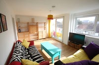 Shared living room with an all day sunshine balcony and spacious kitchen diner.
