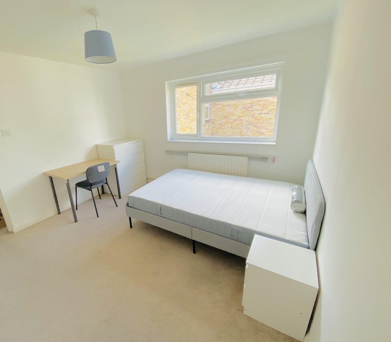 Offered furnished (double bed, built-in/freestanding wardrobe, chest of drawers, desk & chair) or unfurnished.