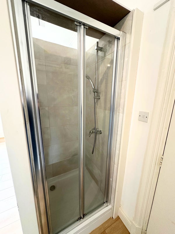 Part furnished with double bed & mattress, wardrobe, desk and separate shower area