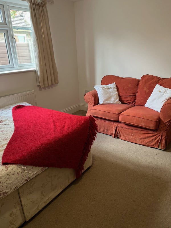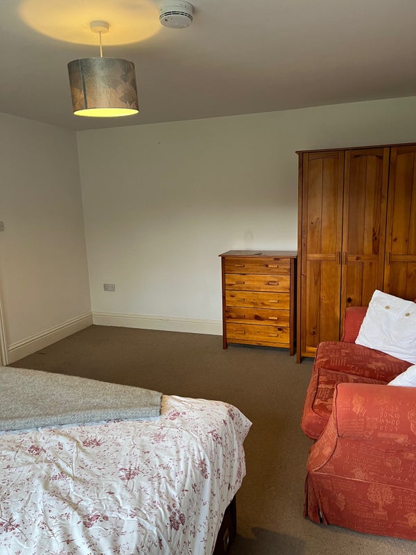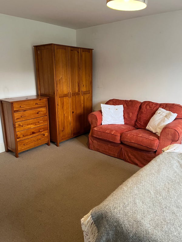 This large doubles room is fully furnished with double bed, chest of drawers , wardrobe, sofa and bedside cabinet.