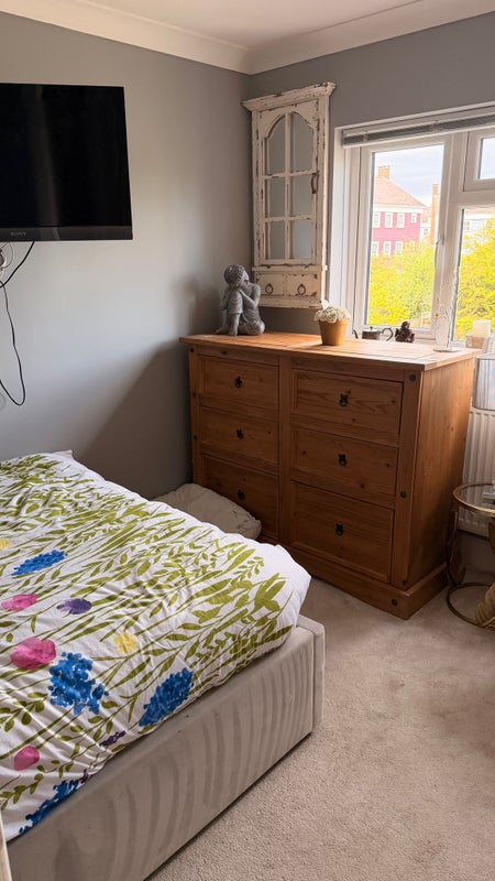 The accommodation on offer is a nicely-decorated bright single bedroom, furnished with a single bed, wardrobe, chest of drawers and bedside table. There is a shared bathroom (bath with shower) and shared use of the well-presented kitchen and sitting room. There is also a lovely garden and an off-street parking space.