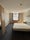 The room is furnished to a high standard, including a bed, wardrobe, chest of drawers, bedside tables, and a built-in shelving unit.